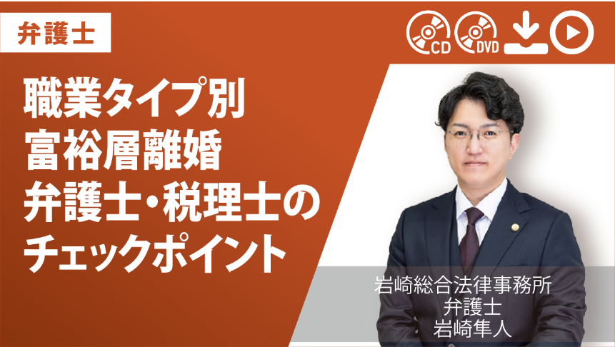 2026年1月1日発売の講演「職業タイプ別 富裕層離婚 弁護士・税理士のチェックポイント」では、こうした論点について解説しています。