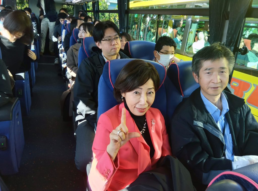 式典会場からはとバス乗り場へ移動し、次はバスレクリエーションとなります。