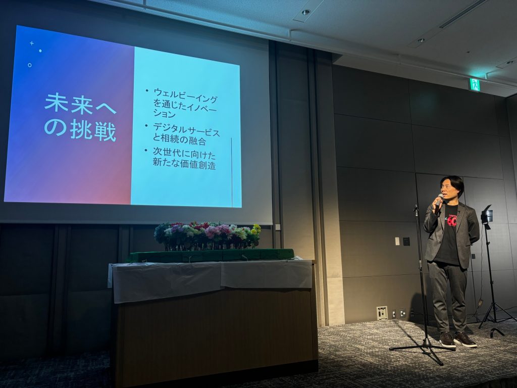 その後、レガシィのブランディング動画の上映がされ、プロジェクト担当で常務取締役の梅田の挨拶へと続いていきます。