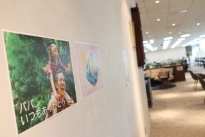 壁に「パパ、いつもありがとう」「ママ、いつもありがとう」のポスターをあしらってみました。感謝の気持ちが届きますように♪